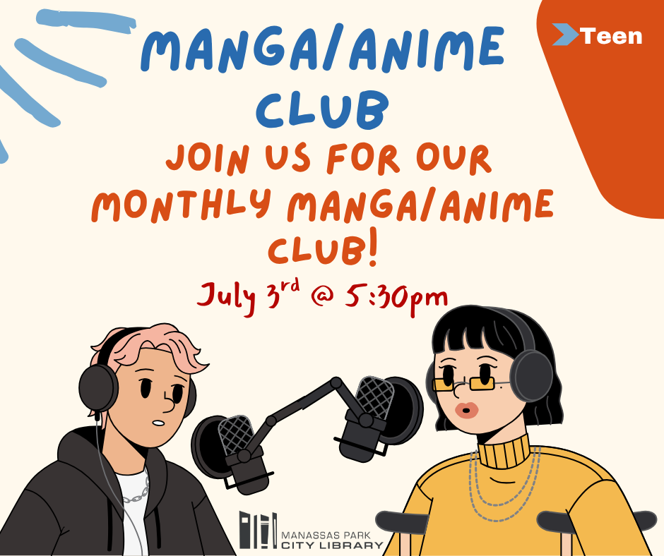 Join us for our monthly Manga/Anime Club to discuss your favorite Anime and help create a Manga!