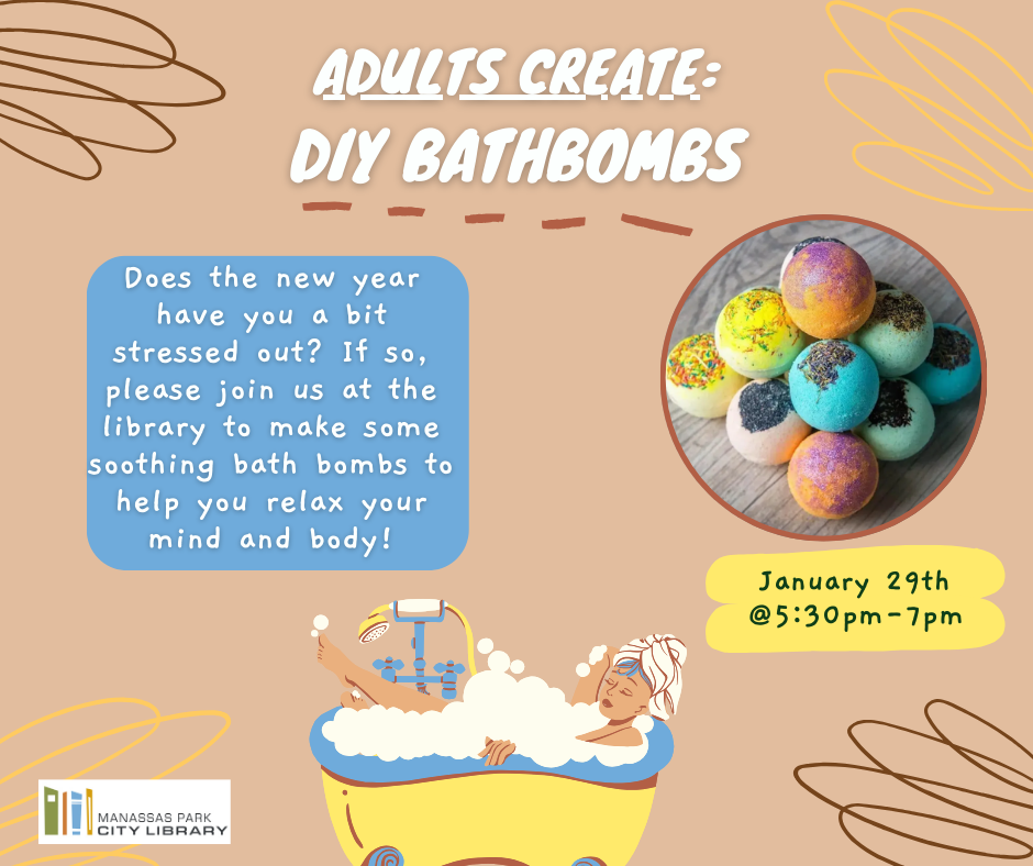 Does the new year have you a bit stressed out? If so, please join us at the library to make some soothing bath bombs to help you relax your mind and body!