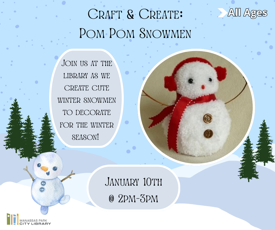 Join us at the library as we create cute winter snowmen to decorate for the winter season!